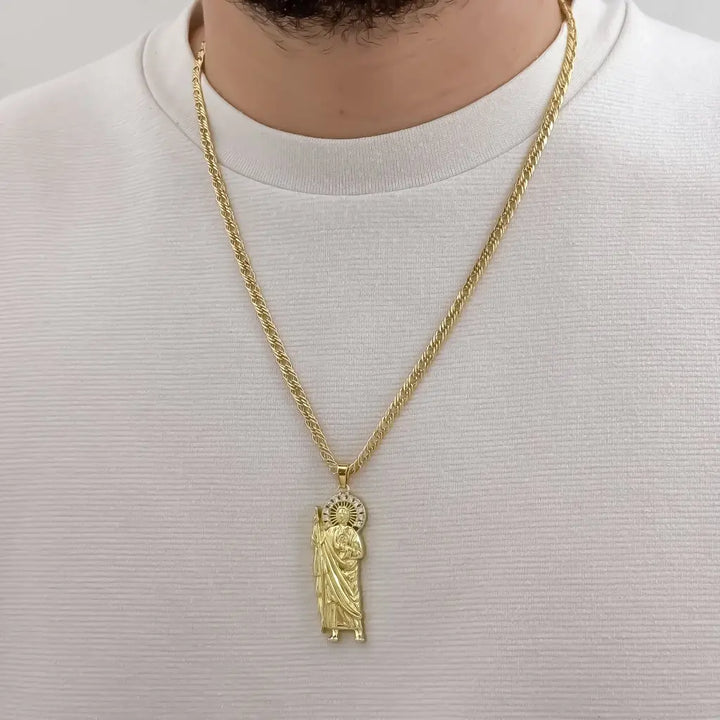 Cadena De Caballero De Tejido Cubana Barbada De 60cm-4mm De Grosor Con Dije De San Judas