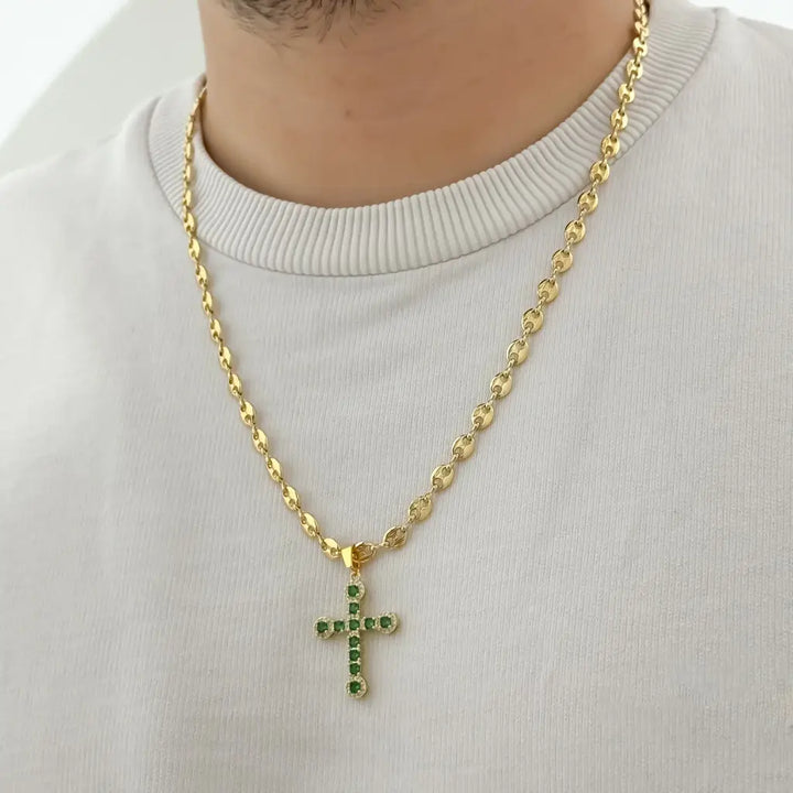 Cadena De Caballero De Tejido Gucci De 60cm-4mm De Grosor Con Dije De Cruz Verde + Envío Gratis