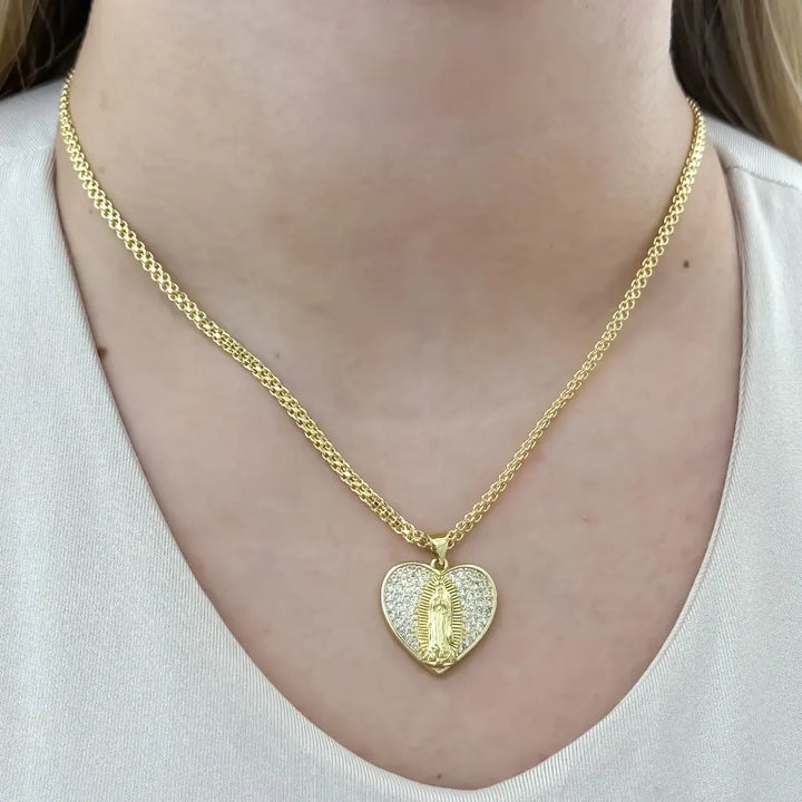 Cadena De Dama De Tejido Chino De 50cm-4mm De Grosor Con Dije De Corazón Cristal De La Virgen De Guadalupe