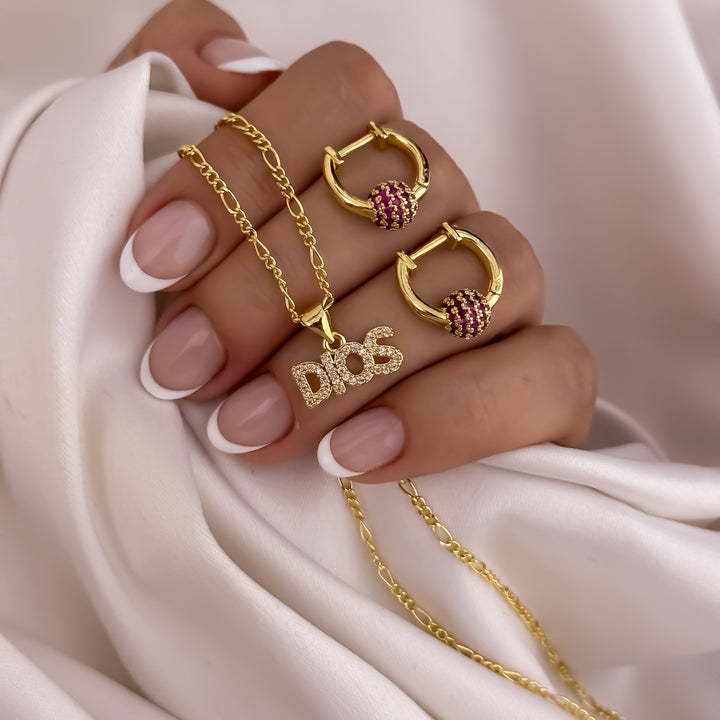 Cadena Tejido Catier de Dama de 45cm + Dije de Dios con Micro circones + Candonga Circon en Oro laminado 18k