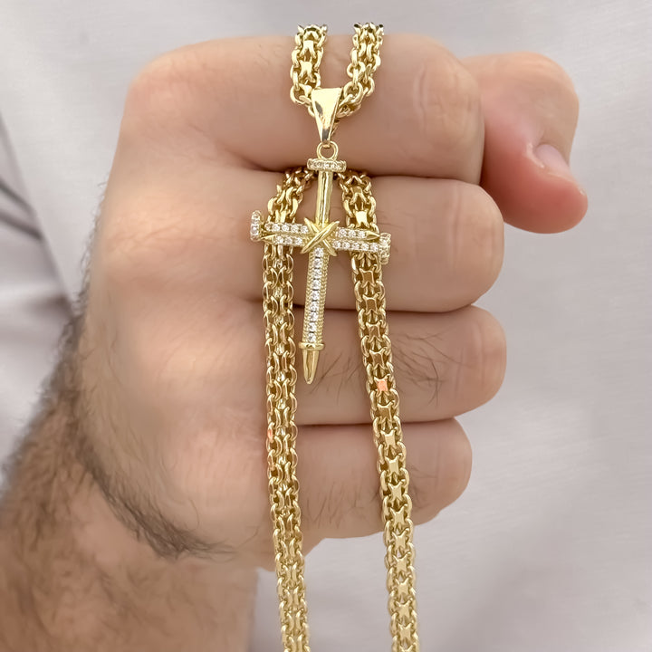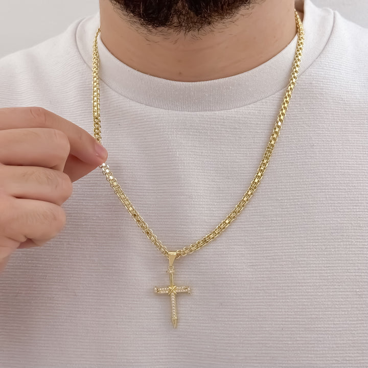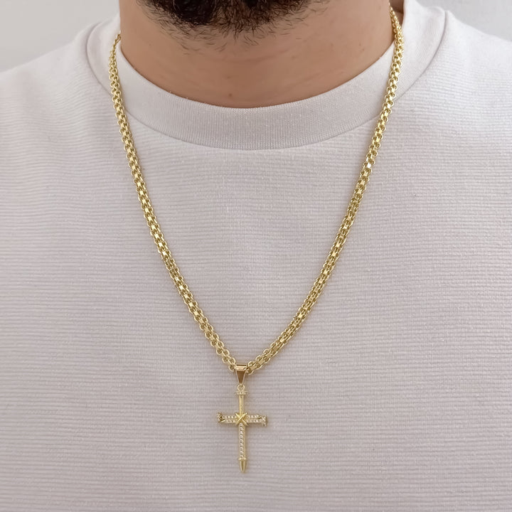 Cadena Tejido Chino de Hombre 60cm de 3mm de Grosor + Cruz clavo con micro circones
