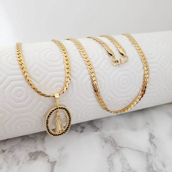 Cadena Tejido Serpiente de 60-5mm de Grosor + Dije De La Virgen de Guadalupe