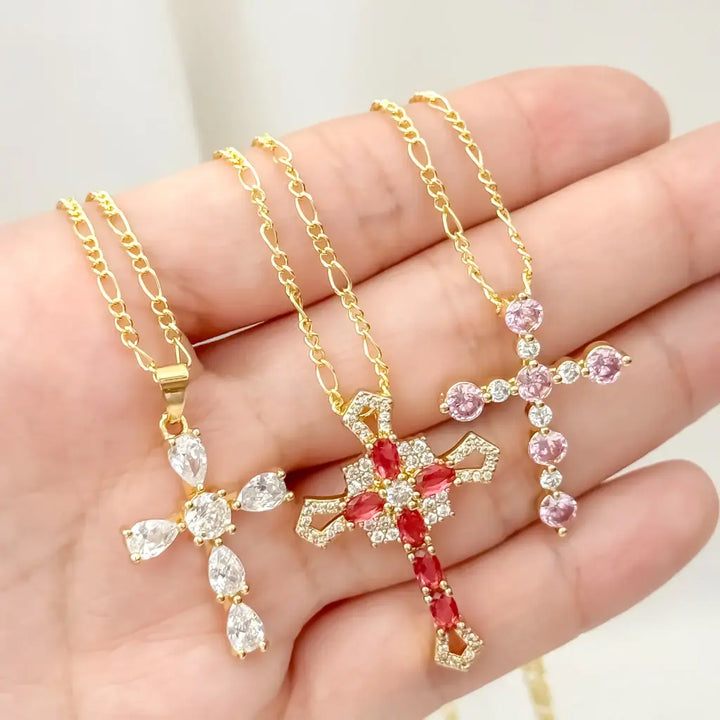 Cadenas De Dama De Tejido Cartier De 50cm-2mm De Grosor Con Dijes De Cruz Cristal + Envío Gratis