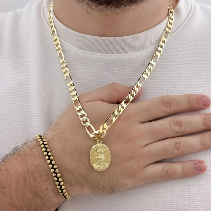 Conjunto De Caballero Con Cadena De Tejido Cartier Con Dije De La Virgen Y Manilla De Dos Carriles