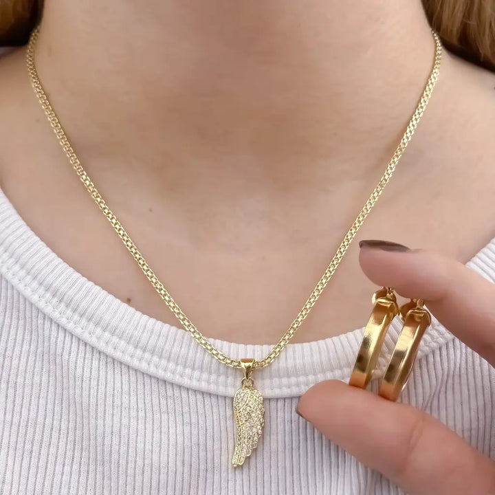 Conjunto De Dama Con Cadena De Tejido Chino Con Dije De Ala Cristal Y Candongas De 30mm