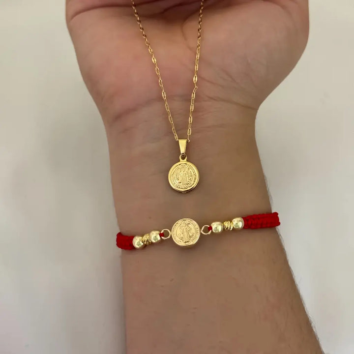 Conjunto De Dama Con Cadena De Tejido Crispeta Con Dije De San Benito Y Manilla Con Herraje De San Benito + Envío Gratis