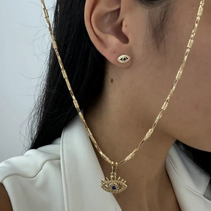 Conjunto De Dama Con Cadena De Tejido Serpiente Con Topos Y Dije De Ojo Turco + Envío Gratis