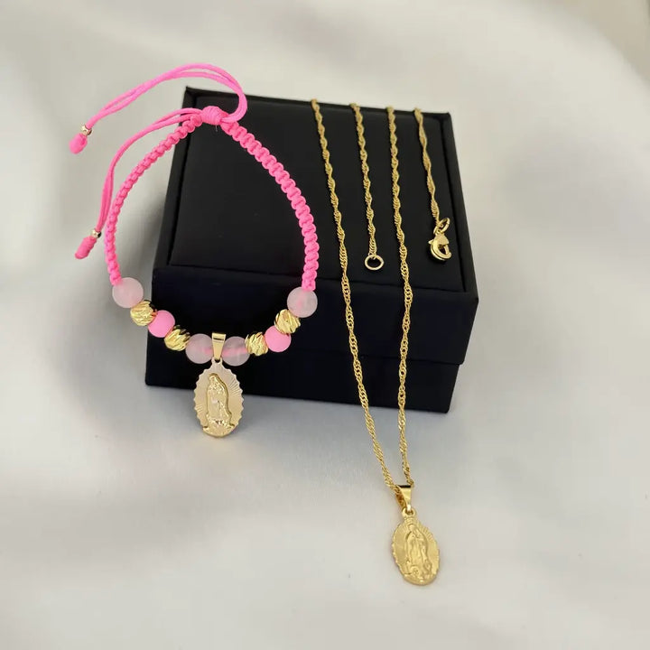Conjunto De Dama Con Cadena De Tejido Singapur Con Dije De La Virgen De Guadalupe + Manilla Con Dije De La Virgen De Guadalupe + Envío Gratis