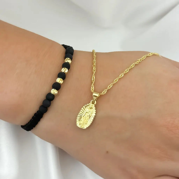 Conjunto De Dama Con Cadena Tejido Singapur, Dije De La Guadalupe Y Manilla De Balines Italianos + Envío Gratis