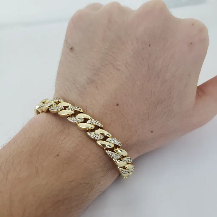 Esclava De Caballero De Tejido Cubana Diamantada De 20cm-8mm De Grosor + Envío Gratis