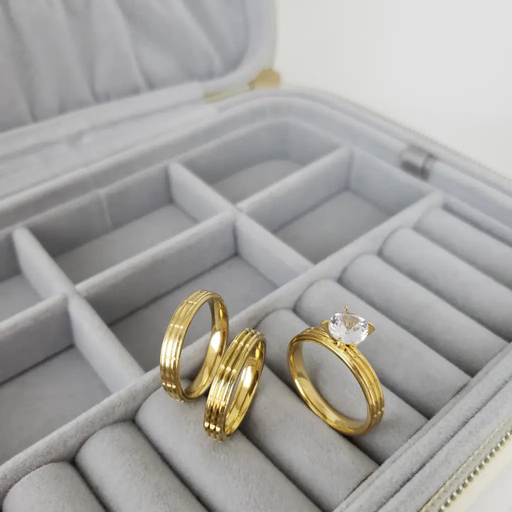 Juego De Argollas De Matrimonio + Argolla De Compromiso De Líneas Verticales