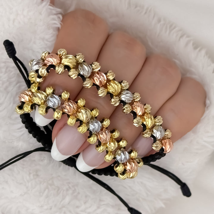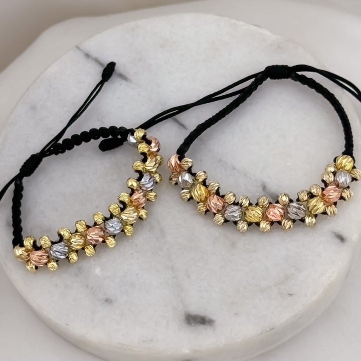 Promo de 2 Pulseras Para Parejas 3 Caris en Balin italiano de 3 Oros Tipo Oro de 18k su Labrado en Oro Laminado 18k con Garantía de por vida